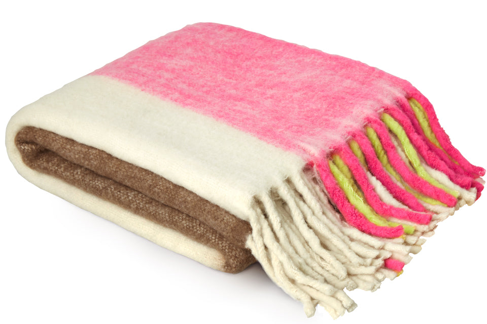 Mohair wool blend 4 colour blanket with 20cm tassels