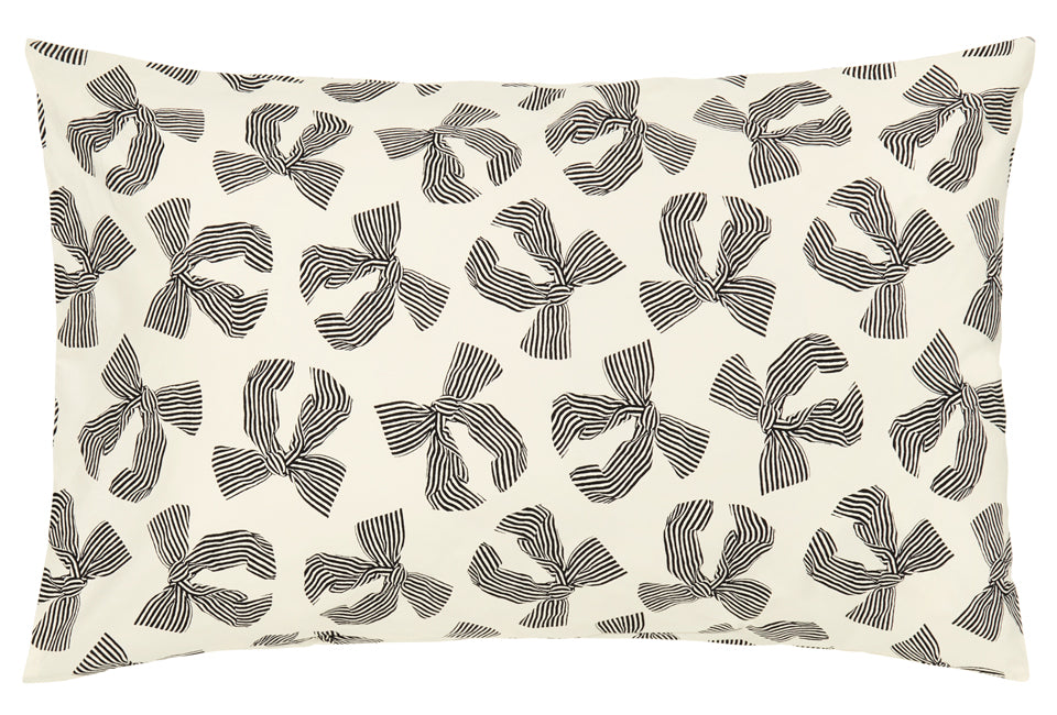 100% cotton standard pillowcase with black ribbon print on eggnog base