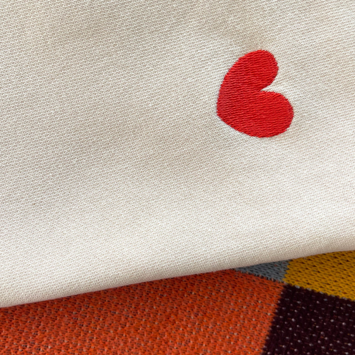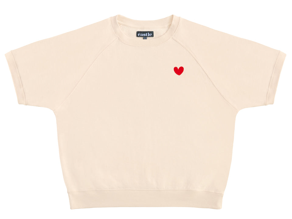HEART embroidered cream cotton fleece lined short sleeve sweater