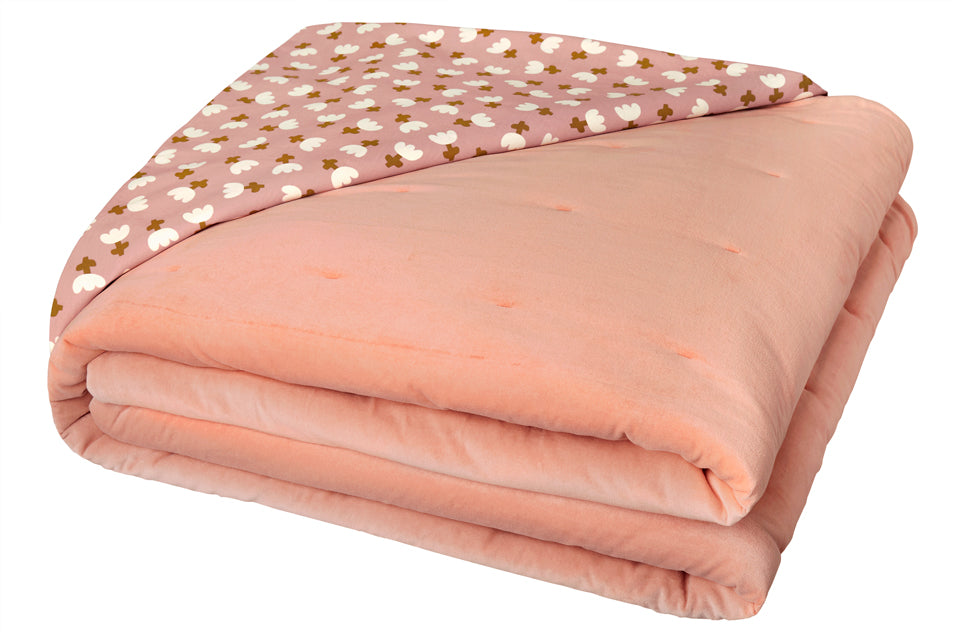 Rose velvet front with rosy posy cotton reverse bedspread with poly/cotton fill.